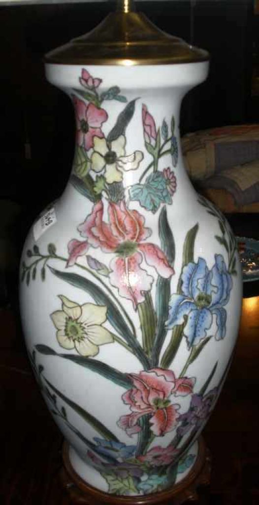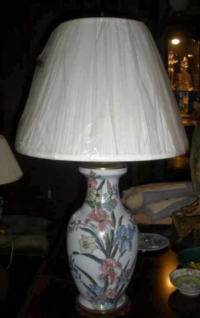 Oriental White Lamp with Flowers and Butterflies. 33" tall Oriental White Lamp with Flowers and Butterflies. 33" tall