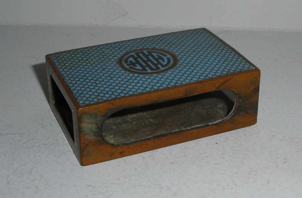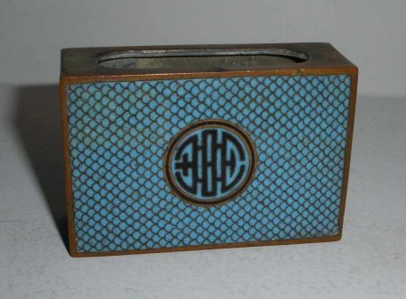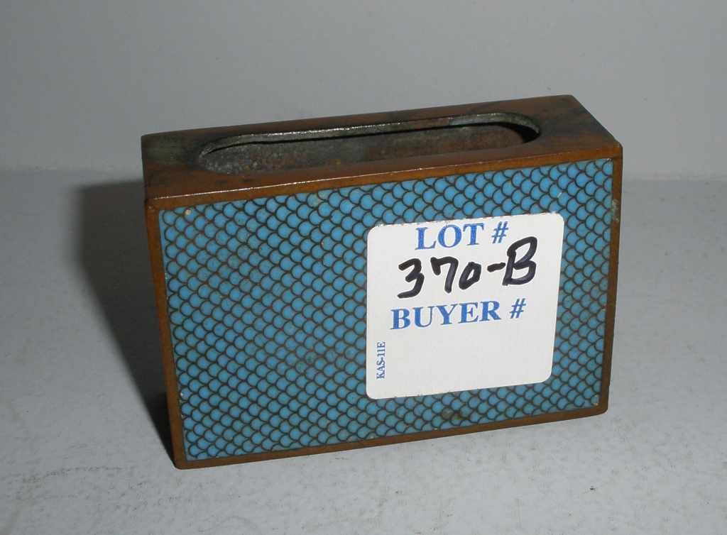 Blue Champleve on Bronze. 1 1/2" width x 2 1/4" length x 3/4" height Blue Champleve on Bronze. 1 1/2" width x 2 1/4" length x 3/4" height