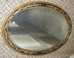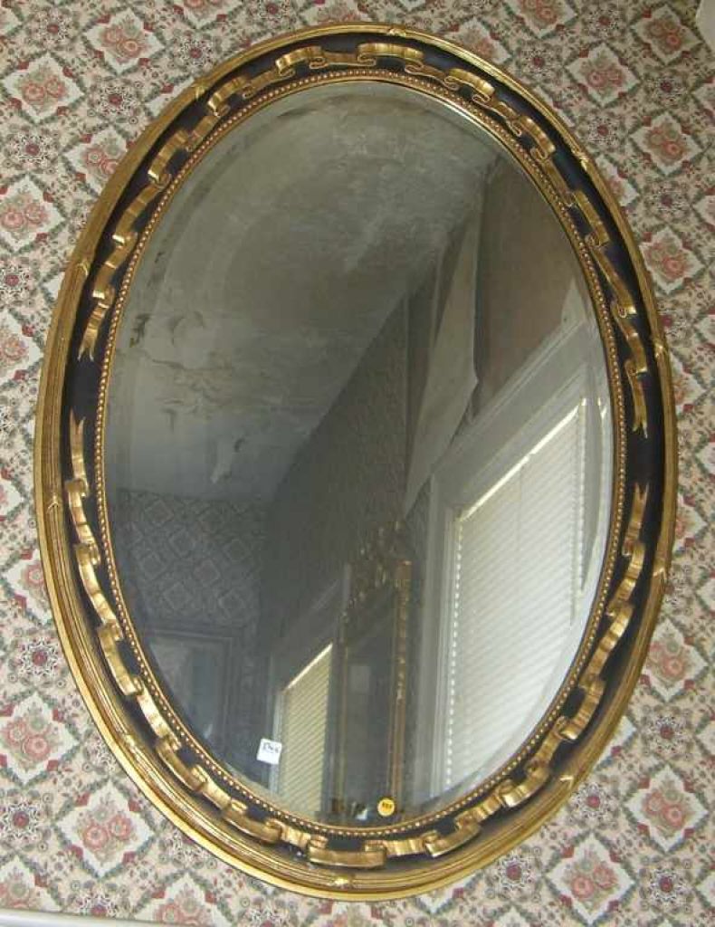 Oval gilt & ebonized framed beveled mirror - 33" wide by 47" tall Oval gilt & ebonized framed beveled mirror - 33" wide by 47" tall