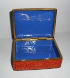 Cinnabar Rectangular Cover Box w/Blue Enamel Interior. 3 1/4" width x 4 1/8 length x 1 1/4" height Cinnabar Rectangular Cover Box w/Blue Enamel Interior. 3 1/4" width x 4 1/8 length x 1 1/4" height