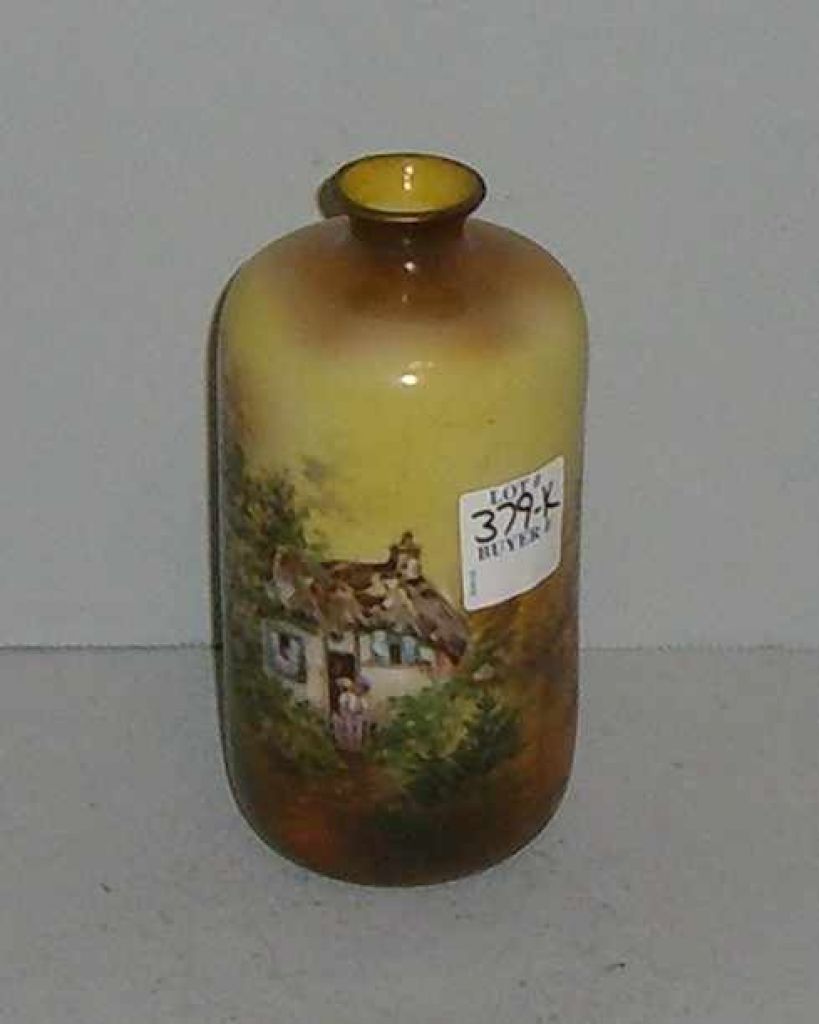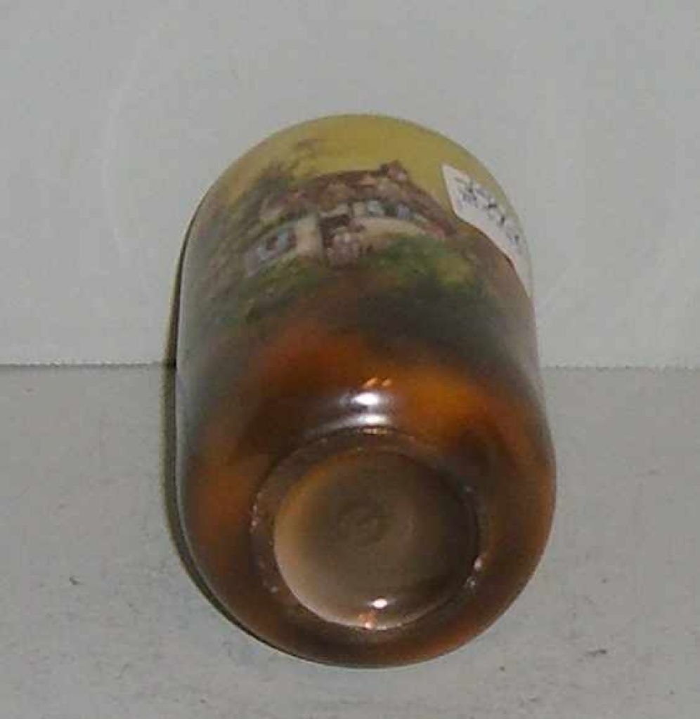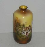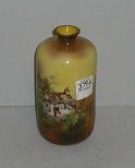 Small RS Prussia vase. Yellow with house & garden scene - 3" round by 5 1/2" tall Small RS Prussia vase. Yellow with house & garden scene - 3" round by 5 1/2" tall
