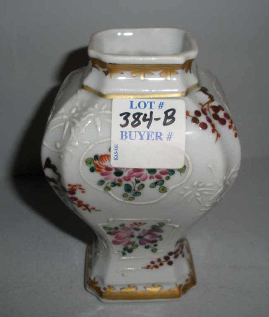 Chinese Export Armorial Vase w/Lion, Supporting Shield and Crested - Latin "Fortis Enbello" - 4 1/2" tall. Chinese Export Armorial Vase w/Lion, Supporting Shield and Crested - Latin "Fortis Enbello" - 4 1/2" tall.
