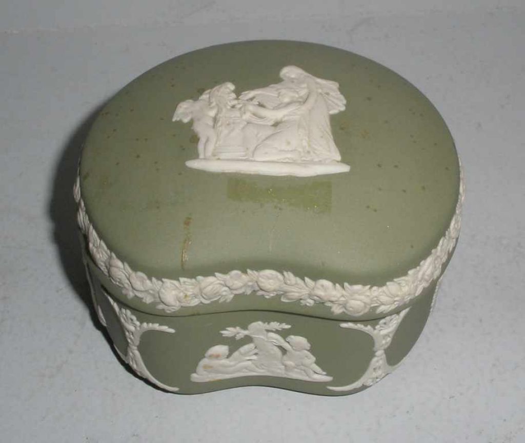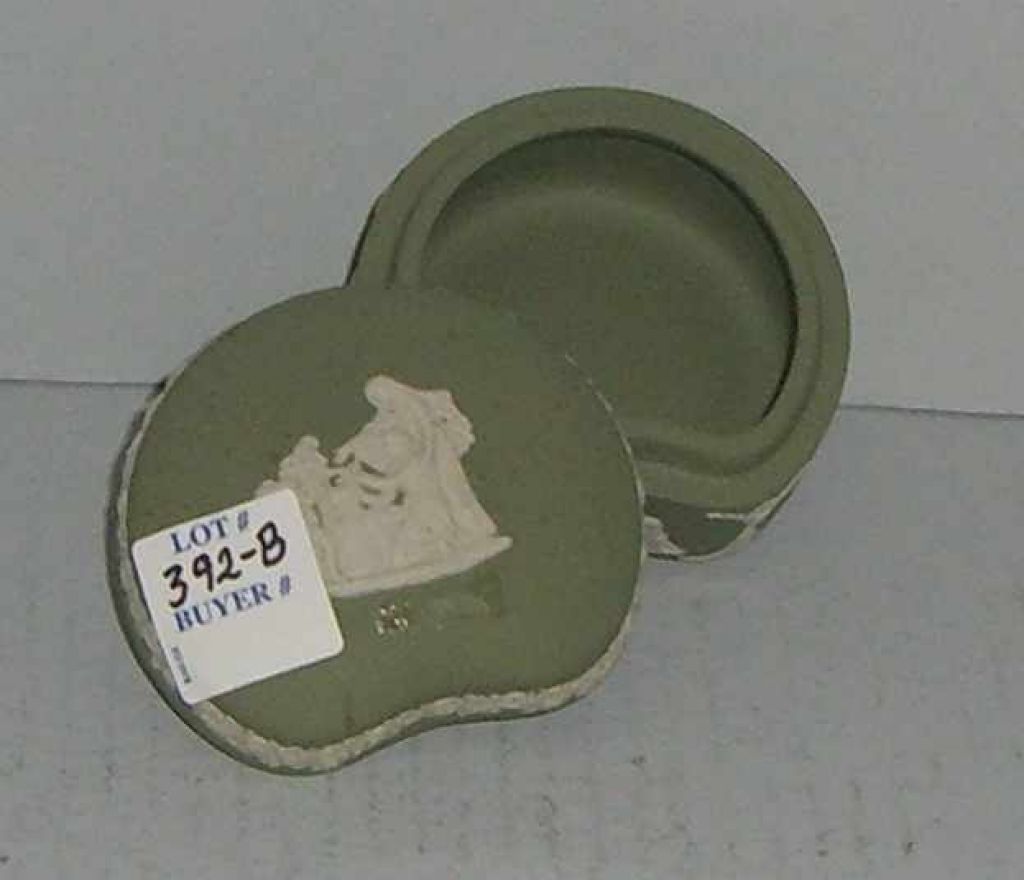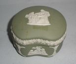 Wedgwood Green and White Jasperware Cover Box. 2 3/4" width x 3" length x 2" height Wedgwood Green and White Jasperware Cover Box. 2 3/4" width x 3" length x 2" height