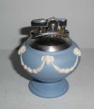 Wedgwood Blue and White Jasperware, Bronzing Cigarette Lighter. 2 1/2" diameter at center, 3" tall Wedgwood Blue and White Jasperware, Bronzing Cigarette Lighter. 2 1/2" diameter at center, 3" tall