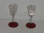 3152 Pair of Clear Cordial Glasses with Ruby Bottoms