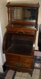 Rosewood carved coal storage cabinet with marquetry inlay cylinder door & shelves above - 44 1/4" tall by 19" wide by 18 1/4" deep Rosewood carved coal storage cabinet with marquetry inlay cylinder door & shelves above - 44 1/4" tall by 19" wide by 18 1/4" deep
