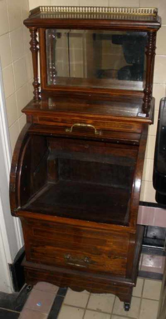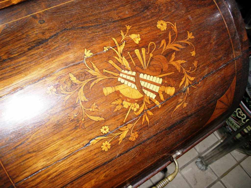 3162 Rosewood carved coal storage cabinet with marquetry inlay cylinder door & shelves