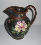 Wedgwood Black Basalt Creamer w/Floral Enamel. 4" width with handle x 4 1/2" height Wedgwood Black Basalt Creamer w/Floral Enamel. 4" width with handle x 4 1/2" height