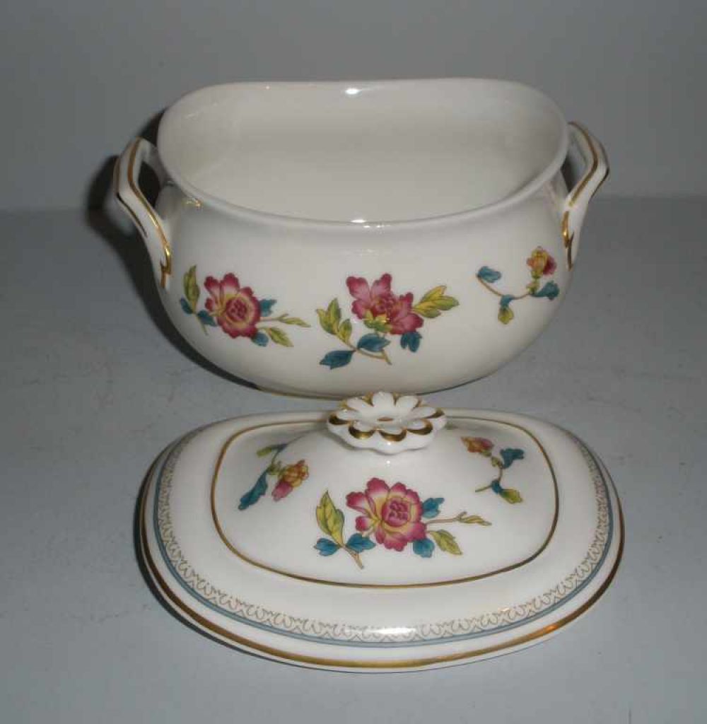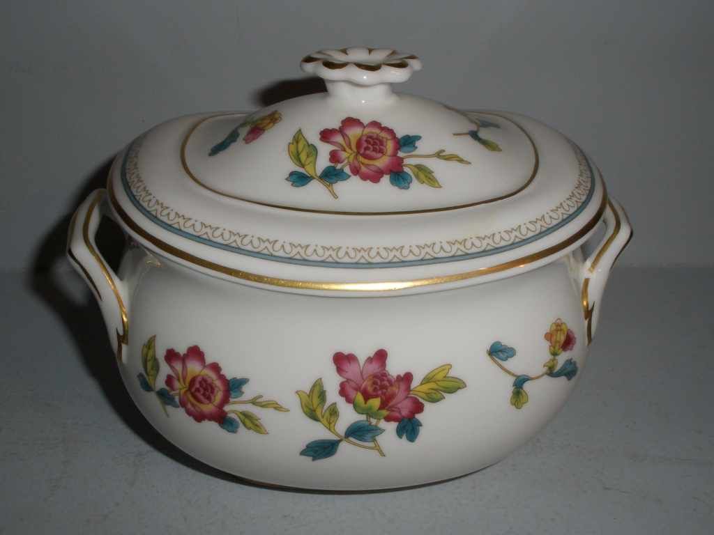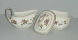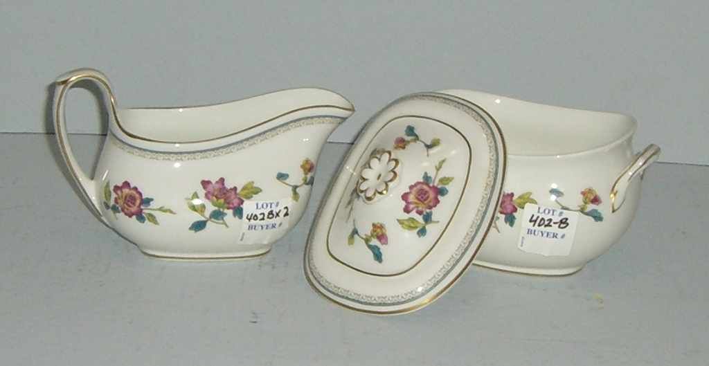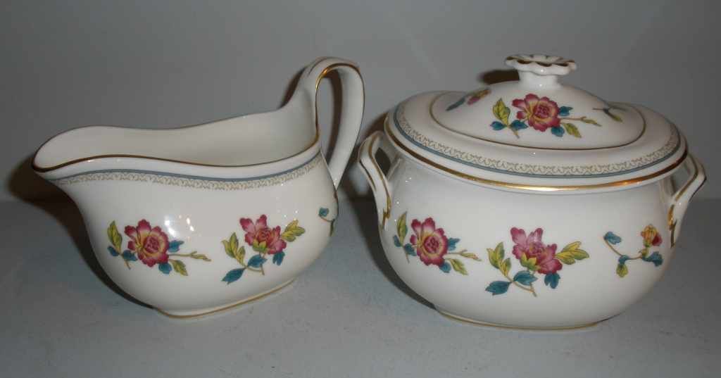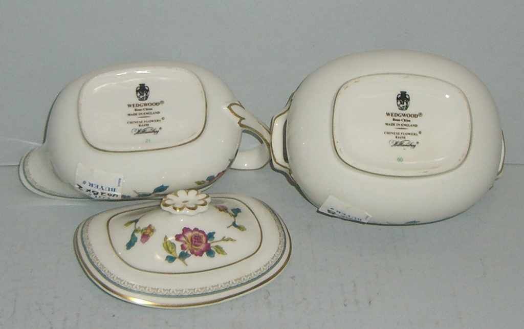 Wedgwood Chinese Flowers, Cream and Sugar Bone China. Creamer 3" width x 6" length x 3 1/2" height, sugar 3 1/2" width x 5" length x 3 1/2 height Wedgwood Chinese Flowers, Cream and Sugar Bone China. Creamer 3" width x 6" length x 3 1/2" height, sugar 3 1/2" width x 5" length x 3 1/2 height
