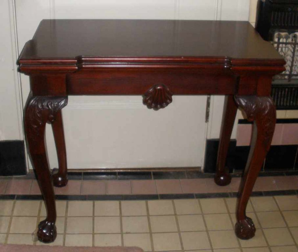 Chippendale style gate leg mahogany flip top game table - 33 5/8" long by 30 7/8" tall by 18" Chippendale style gate leg mahogany flip top game table - 33 5/8" long by 30 7/8" tall by 18"