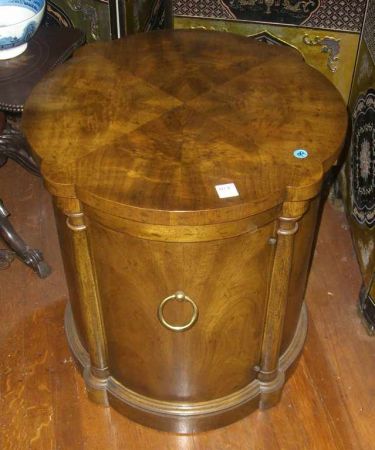 Round commode w/one door burl walnut - 22 1/4" height x 20 3/4" diameter Round commode w/one door burl walnut - 22 1/4" height x 20 3/4" diameter