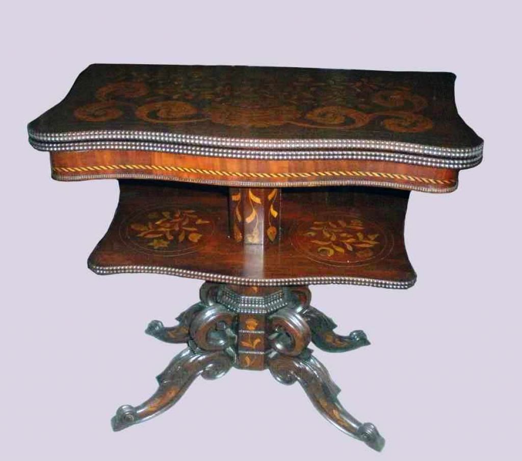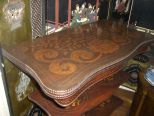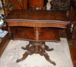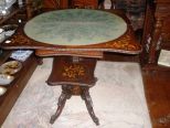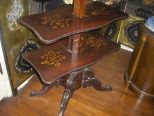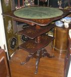 Three tier adjustable server/games table w/marquetry inlay. Three tier adjustable server/games table w/marquetry inlay.