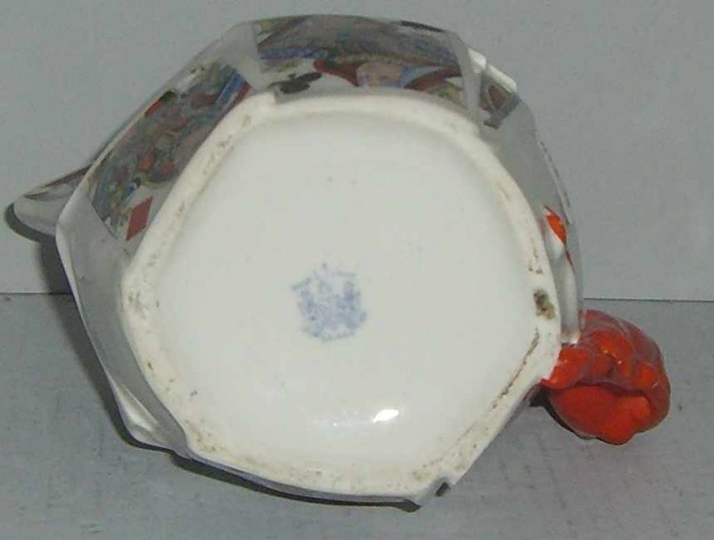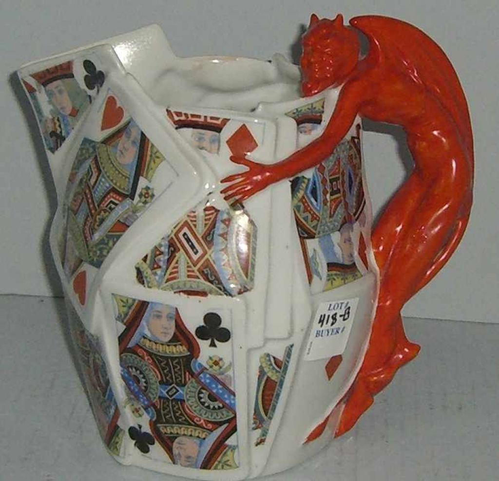 Royal Bayreuth Water Pitcher w/Red Devil Handle and Playing Cards - 7 1/4" tall Royal Bayreuth Water Pitcher w/Red Devil Handle and Playing Cards - 7 1/4" tall