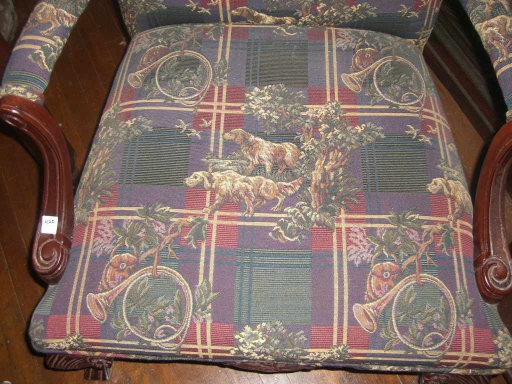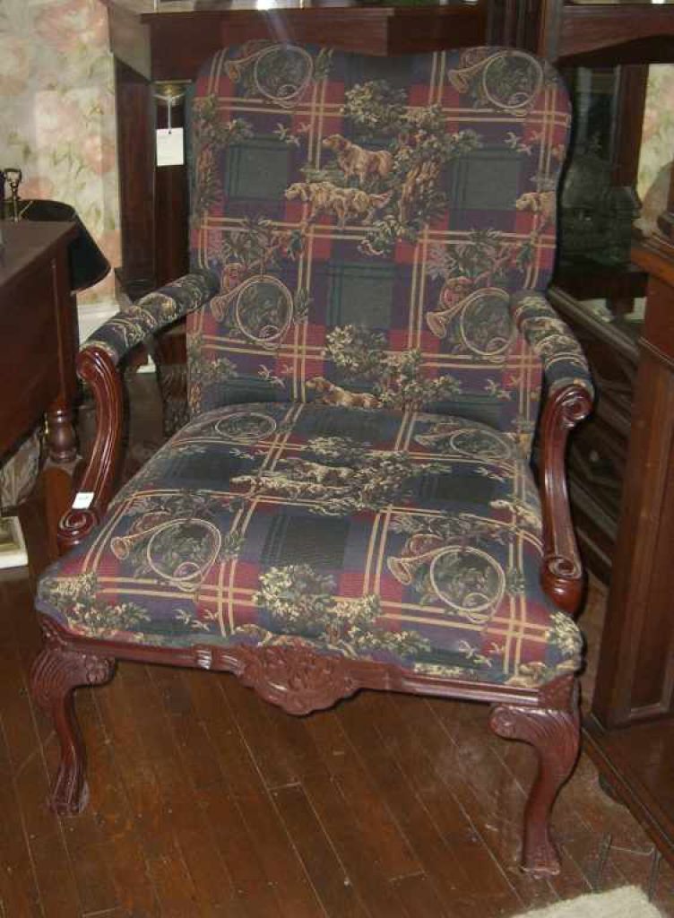 Large English style loling chair w/tapestry fabric. Large English style loling chair w/tapestry fabric.