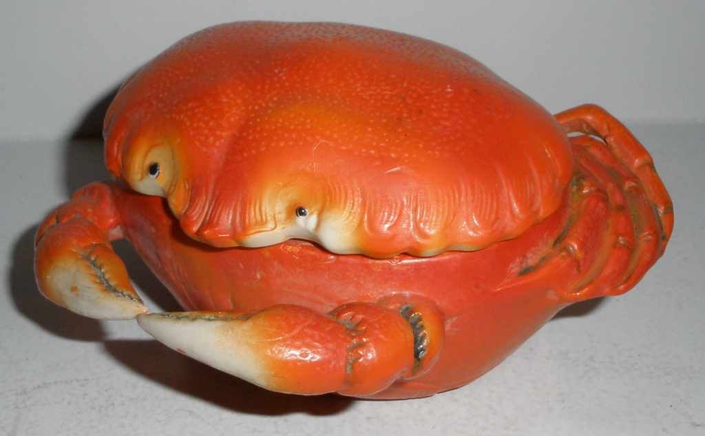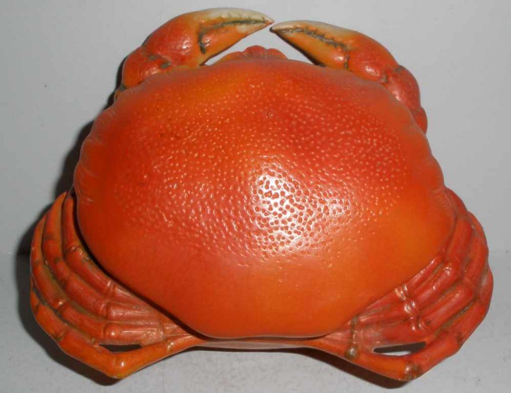Royal Bayreuth Crab Shaped Dish w/Cover, Orange. 3 1/2" width x 4 1/4" length x 2" height Royal Bayreuth Crab Shaped Dish w/Cover, Orange. 3 1/2" width x 4 1/4" length x 2" height
