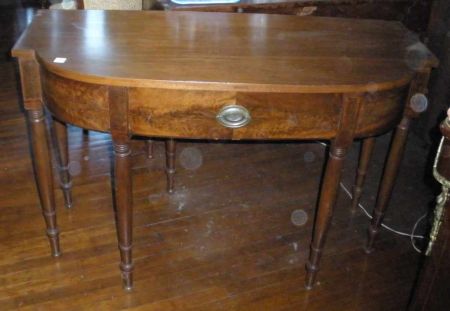 Flame Mahogany Console Table with "D" Ends and One Drawer. Flame Mahogany Console Table with "D" Ends and One Drawer.