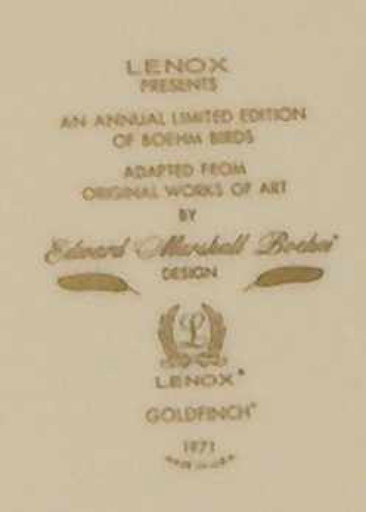 Lenox Boehm Gold Finch Bird Plate - 1972 #2 (boxed) - 10 3/4" Lenox Boehm Gold Finch Bird Plate - 1972 #2 (boxed) - 10 3/4"