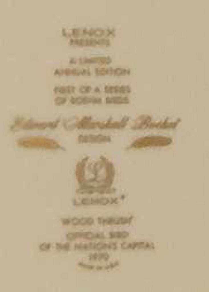 Lenox Boehm Wood Thrush Bird Plate - 1970 #1 (boxed) - 10 3/4" Lenox Boehm Wood Thrush Bird Plate - 1970 #1 (boxed) - 10 3/4"