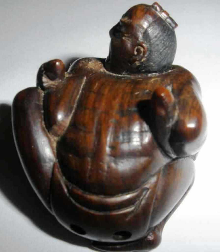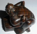 Finely Carved Wooden Netsuke Oriental Figure. 1" width x 1 1/2" length x 1 1/4" height Finely Carved Wooden Netsuke Oriental Figure. 1" width x 1 1/2" length x 1 1/4" height