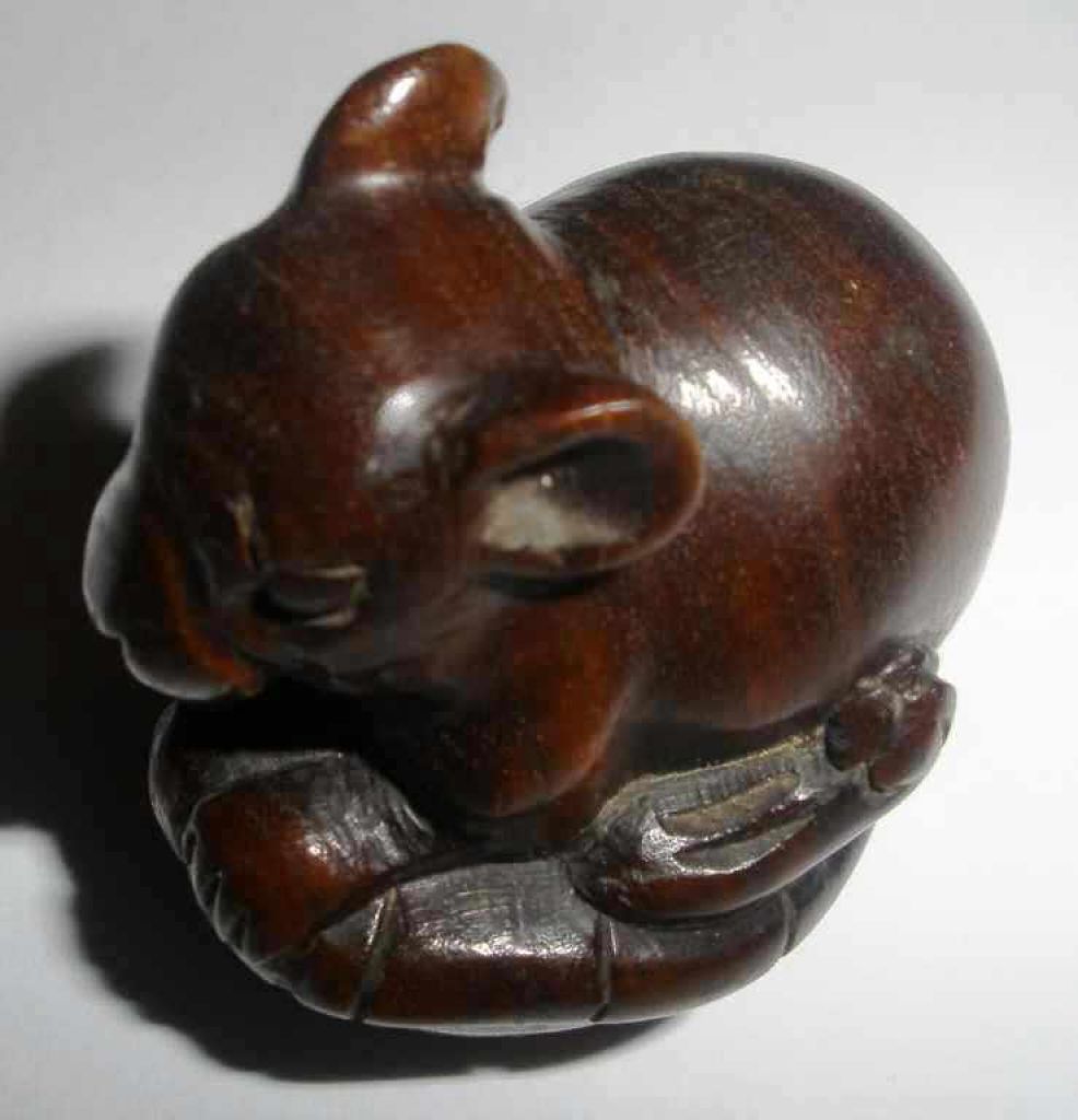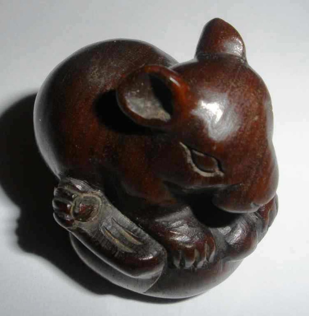 3330 Wooden Carved Netsuke Seated Rat