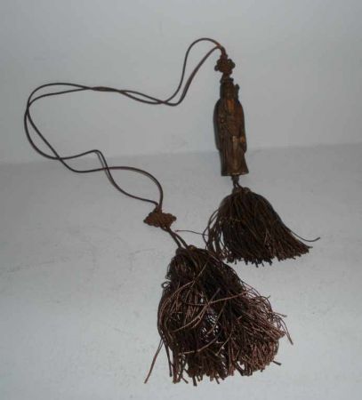 Small Wooden Carved Old Oriental Man w/Brown Stacels - man 1/2" width x 2 1/4" height, full length w/tasel 22" Small Wooden Carved Old Oriental Man w/Brown Stacels - man 1/2" width x 2 1/4" height, full length w/tasel 22"