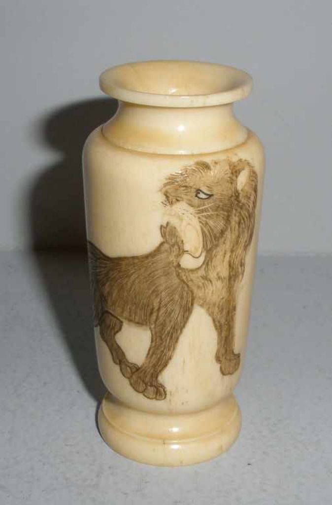 3342 Small Celluloid Vase w/Great Roaring Lion