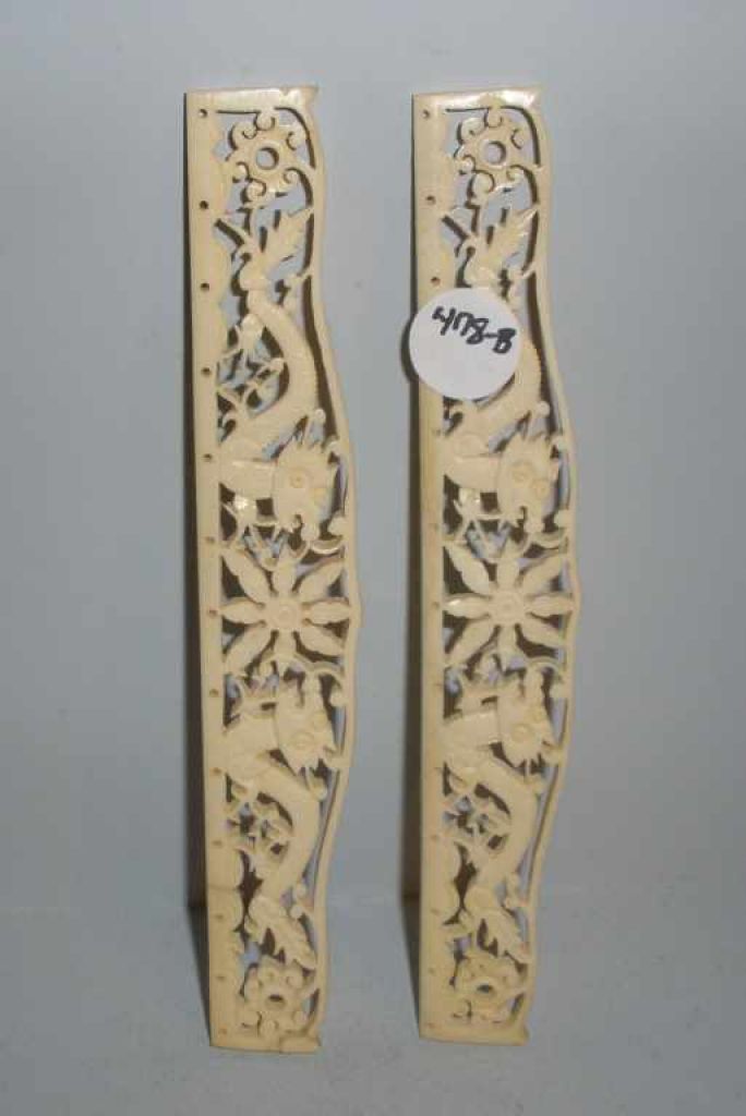 Two Vegetable Ivory Pierced Carved Bell Pull Bins. 7" length x 1" height Two Vegetable Ivory Pierced Carved Bell Pull Bins. 7" length x 1" height