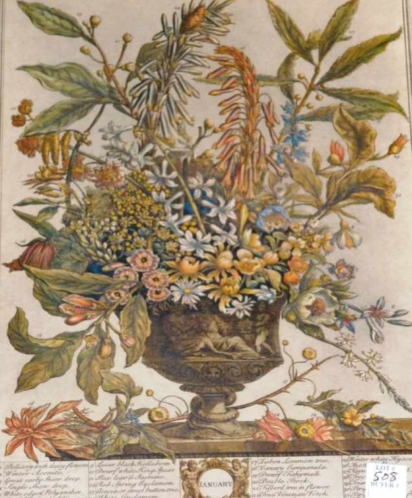 Engraving from the Collection of Rob Furber Gardinor at Kensington 1730 - engraved by H. Fletcher - 33 different types of flowers numered for identification Engraving from the Collection of Rob Furber Gardinor at Kensington 1730 - engraved by H. Fletcher - 33 different types of flowers numered for identification
