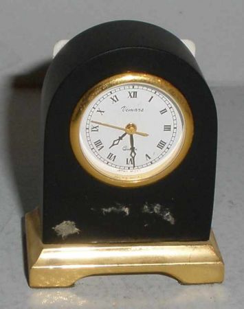Vemars/Quartz Small Brass and Black Humped Shaped Clock - 1 5/8" tall Vemars/Quartz Small Brass and Black Humped Shaped Clock - 1 5/8" tall