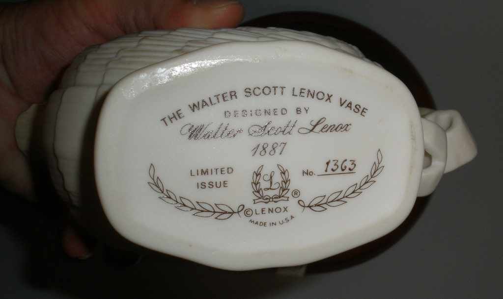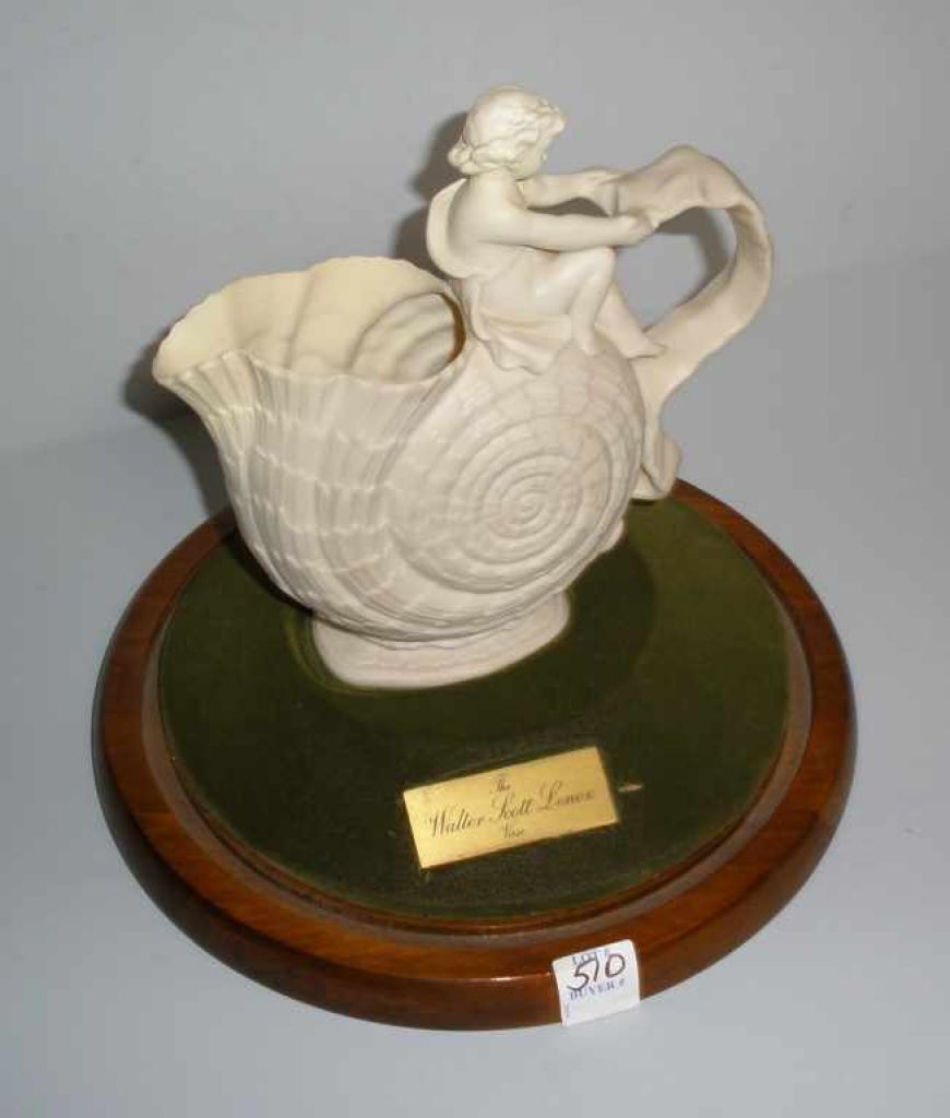 Walter Scott Lenox Vase designed by Walter Scott Lenox 1887 limited issue # 1363 girl on sea shell with wood base Walter Scott Lenox Vase designed by Walter Scott Lenox 1887 limited issue # 1363 girl on sea shell with wood base
