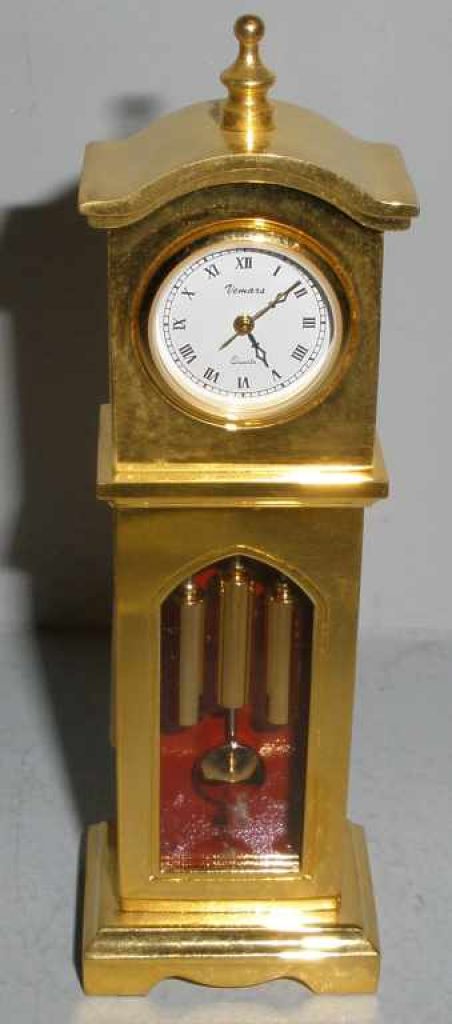 Brass Vemars/Quartz Grandfather Shaped Clock - 4 1/4" tall Brass Vemars/Quartz Grandfather Shaped Clock - 4 1/4" tall