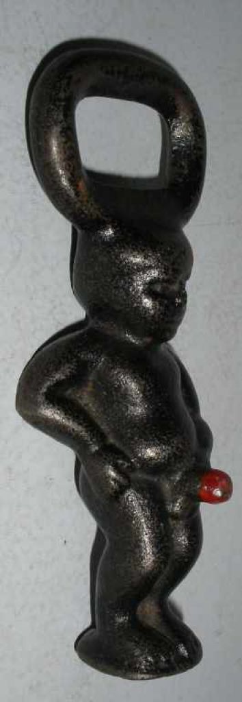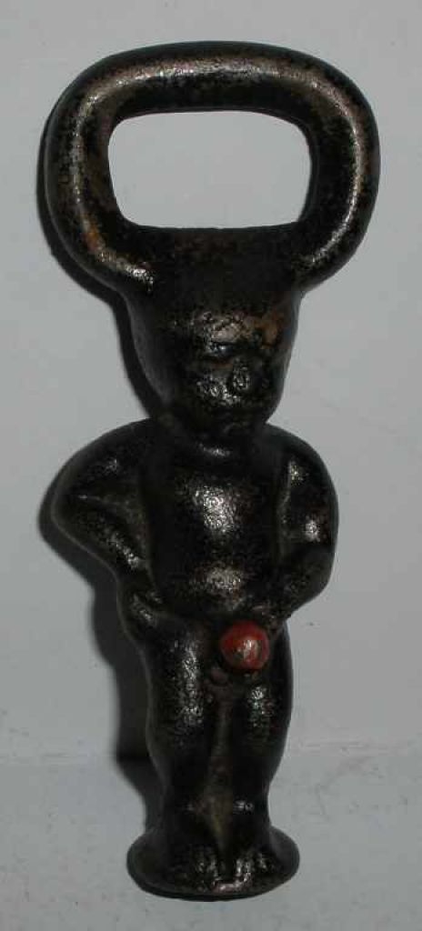 Cast Iron Nude Black Boy Bottle Opener - Marked Burl Bing Co. - 1 1/2" width x 3 1/2" height Cast Iron Nude Black Boy Bottle Opener - Marked Burl Bing Co. - 1 1/2" width x 3 1/2" height