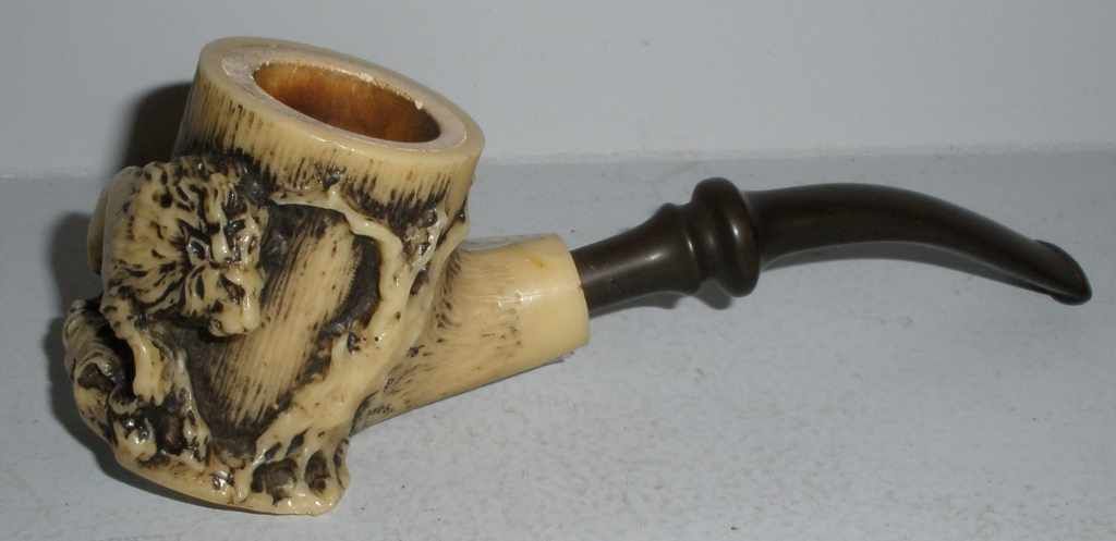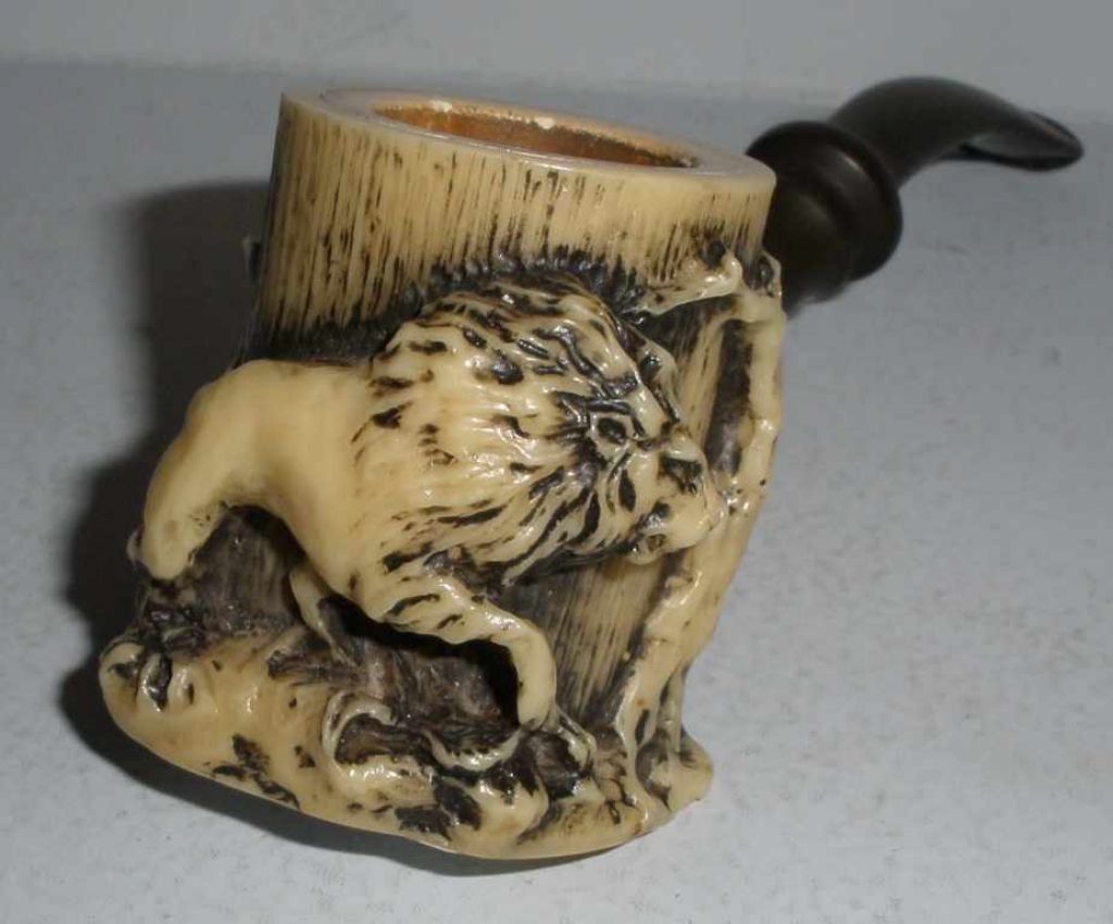 Plastic Carved Bowl Man's Pipe w/Lion and Trees Motif. 5" long Plastic Carved Bowl Man's Pipe w/Lion and Trees Motif. 5" long