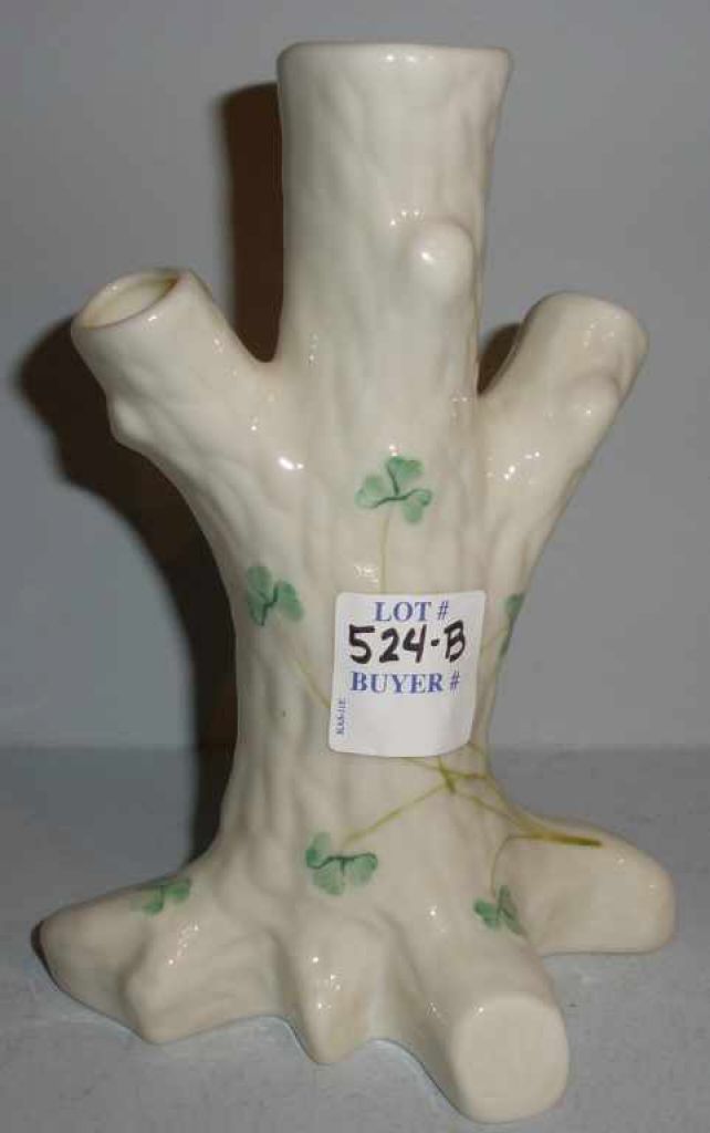 Belleek Irish Green Mark Tree Vase w/Shamrock. 4 1/4" width x 6 1/4" height Belleek Irish Green Mark Tree Vase w/Shamrock. 4 1/4" width x 6 1/4" height