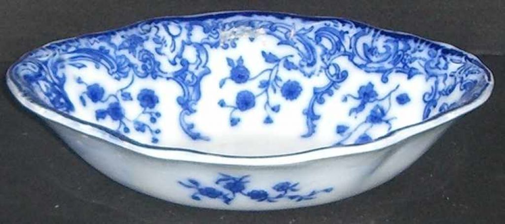 Flow Blue Marie Pattern - Oval Open Vegetable Bowl Flow Blue Marie Pattern - Oval Open Vegetable Bowl