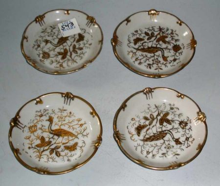 Set of 4 White w/Gilt Floral and Bird D Set of 4 White w/Gilt Floral and Bird D