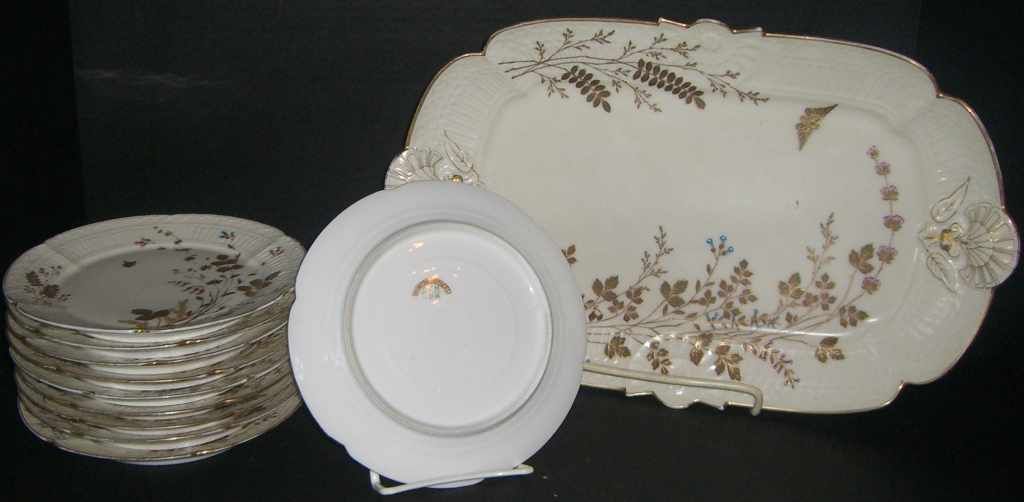 Limoges ice cream set, platter w/10 plates - Cleopatra pattern - plates 7 1/2" diameter - platter 16" diameter Limoges ice cream set, platter w/10 plates - Cleopatra pattern - plates 7 1/2" diameter - platter 16" diameter