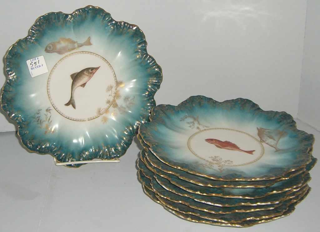 Set of 8 Blue and Green Fish Plates by Elite/Limoges Set of 8 Blue and Green Fish Plates by Elite/Limoges