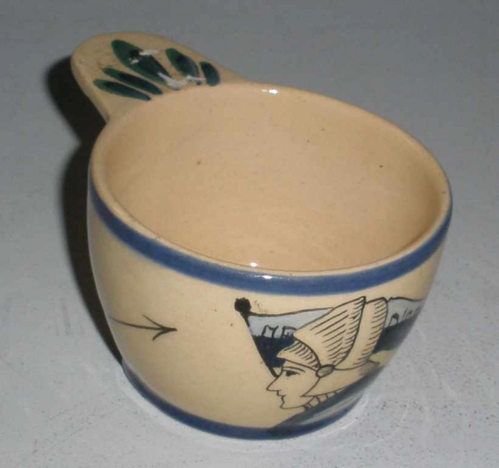 French faience child's porringer w/warrior motif. French faience child's porringer w/warrior motif.