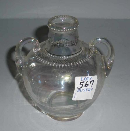 Small double handled vase w/enameling. Small double handled vase w/enameling.