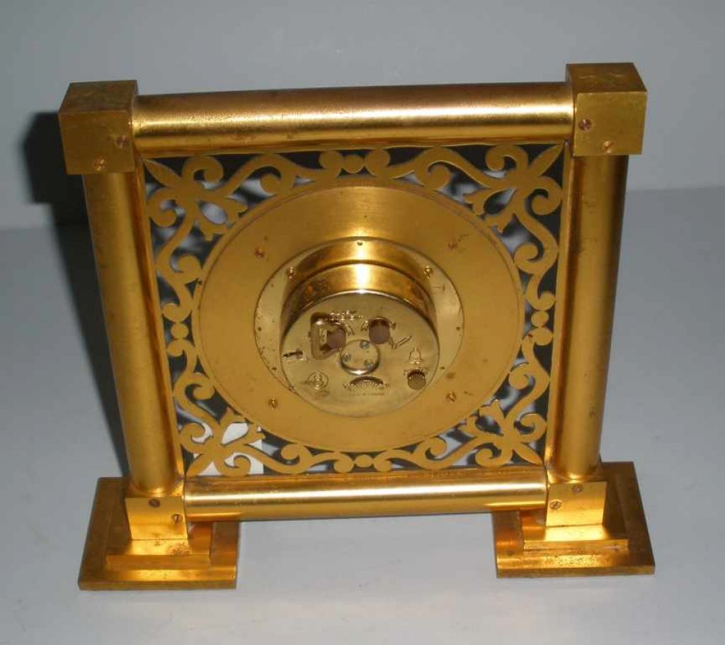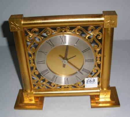 French gilded bronze clock w/alarm. French gilded bronze clock w/alarm.