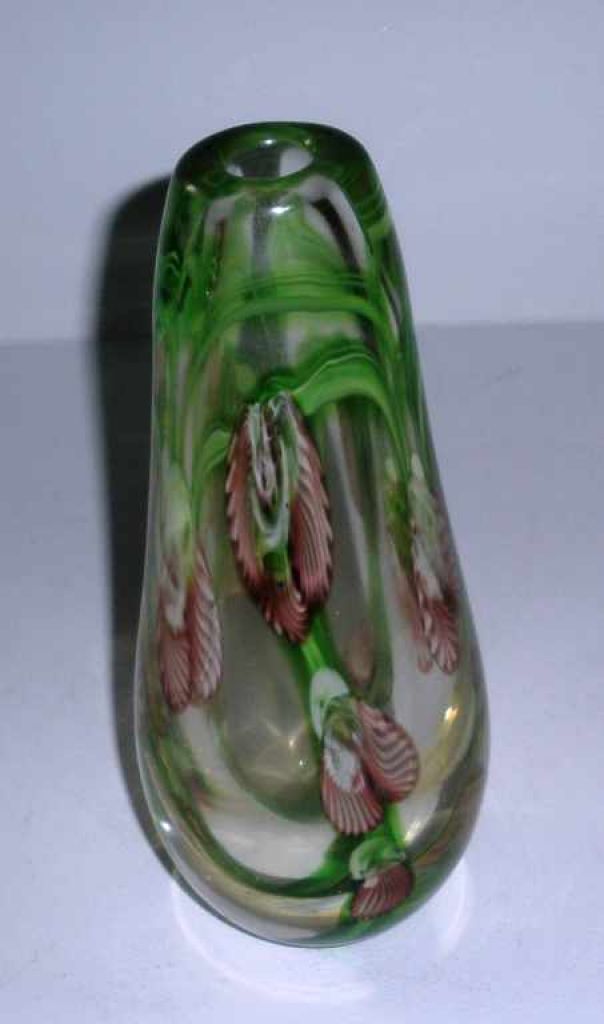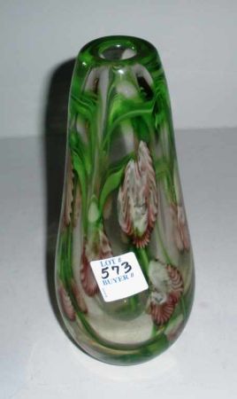 Contemporary art glass vase w/floral decoration. Contemporary art glass vase w/floral decoration.