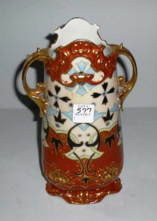 Rust and gold double handled vase w/beading - 10 3/8" tall Rust and gold double handled vase w/beading - 10 3/8" tall