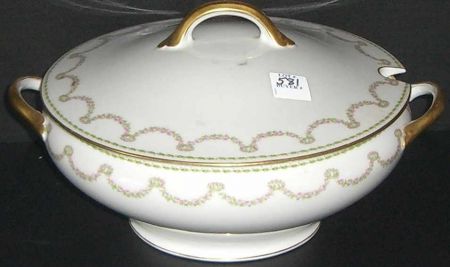 Haviland tureen w/small pink rose and gilt. Haviland tureen w/small pink rose and gilt.