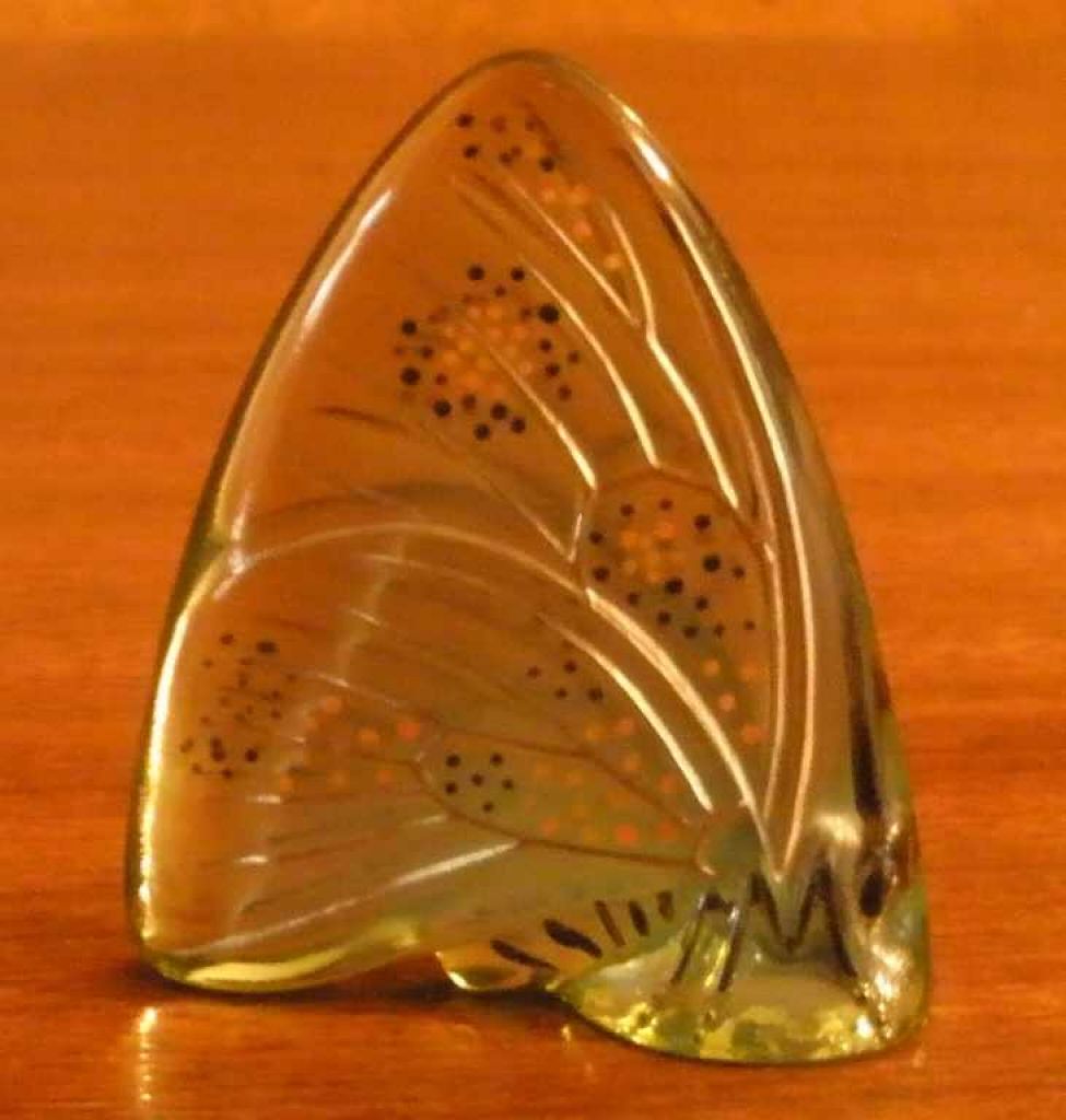 Lalique Small Ring Crystal Butterfly w/Enamel Decoration - 1 7/8" width x 2" height Lalique Small Ring Crystal Butterfly w/Enamel Decoration - 1 7/8" width x 2" height