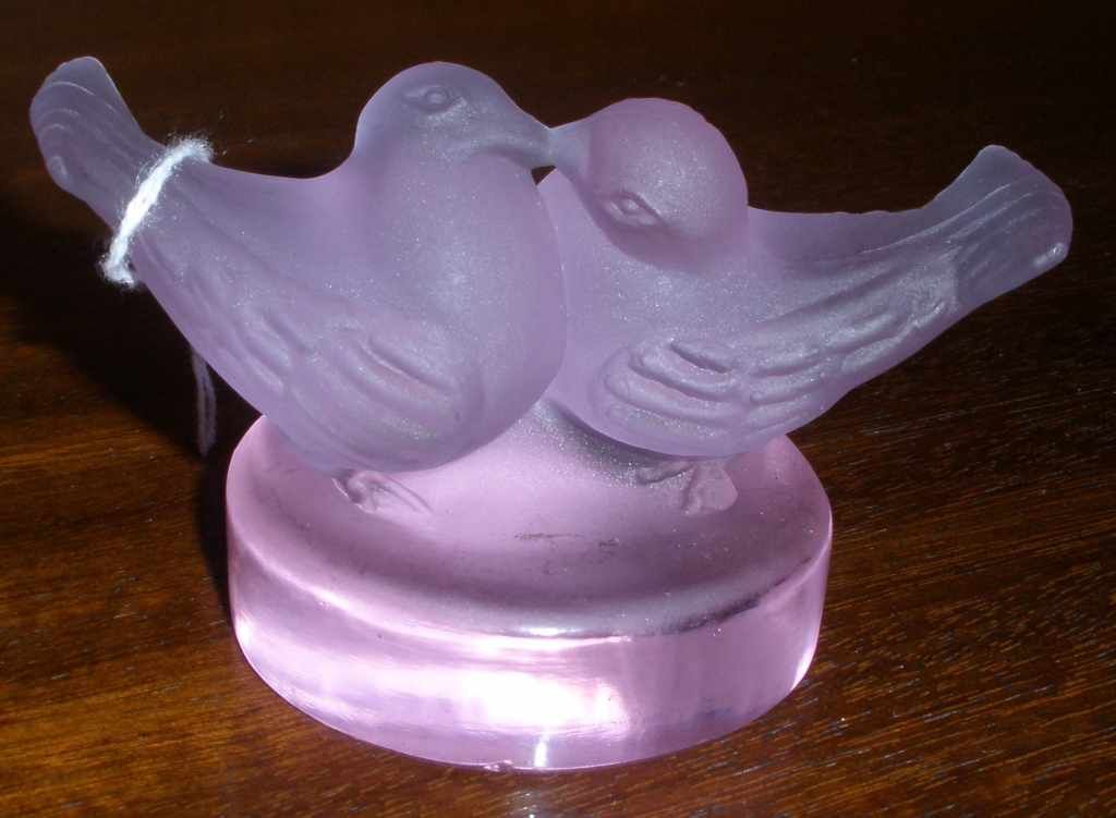 Lalique/France Lavender Frosted Glass Pair of Kissing Birds - 2" width x 3 2/3" length x 2" height Lalique/France Lavender Frosted Glass Pair of Kissing Birds - 2" width x 3 2/3" length x 2" height