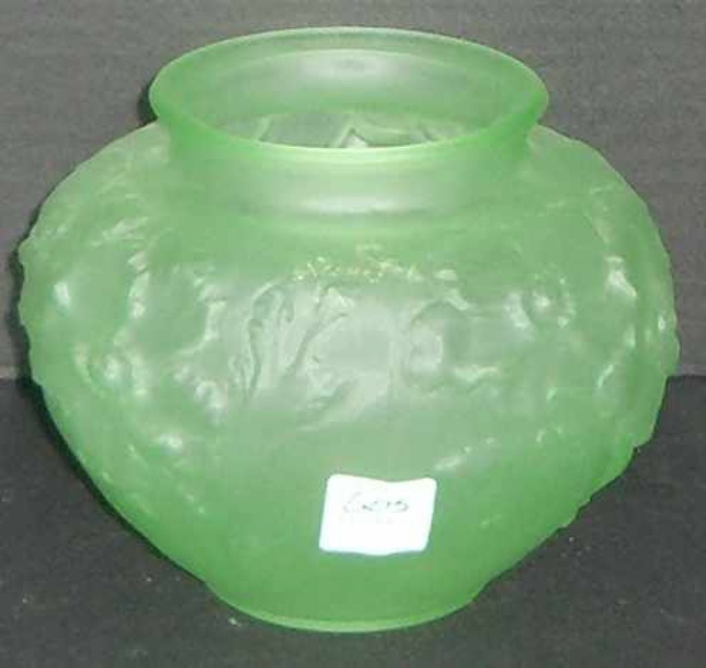 Tiffin Green Satin Glass Poppy Vase - 5 1/4" tall Tiffin Green Satin Glass Poppy Vase - 5 1/4" tall