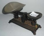 Cast Iron Small Set of Scales w/Aluminum Pan. 3 1/2" width x 5" length x 3" height Cast Iron Small Set of Scales w/Aluminum Pan. 3 1/2" width x 5" length x 3" height