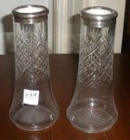3521 Pair of Cut Glass Vases with Sterling Neck Bands