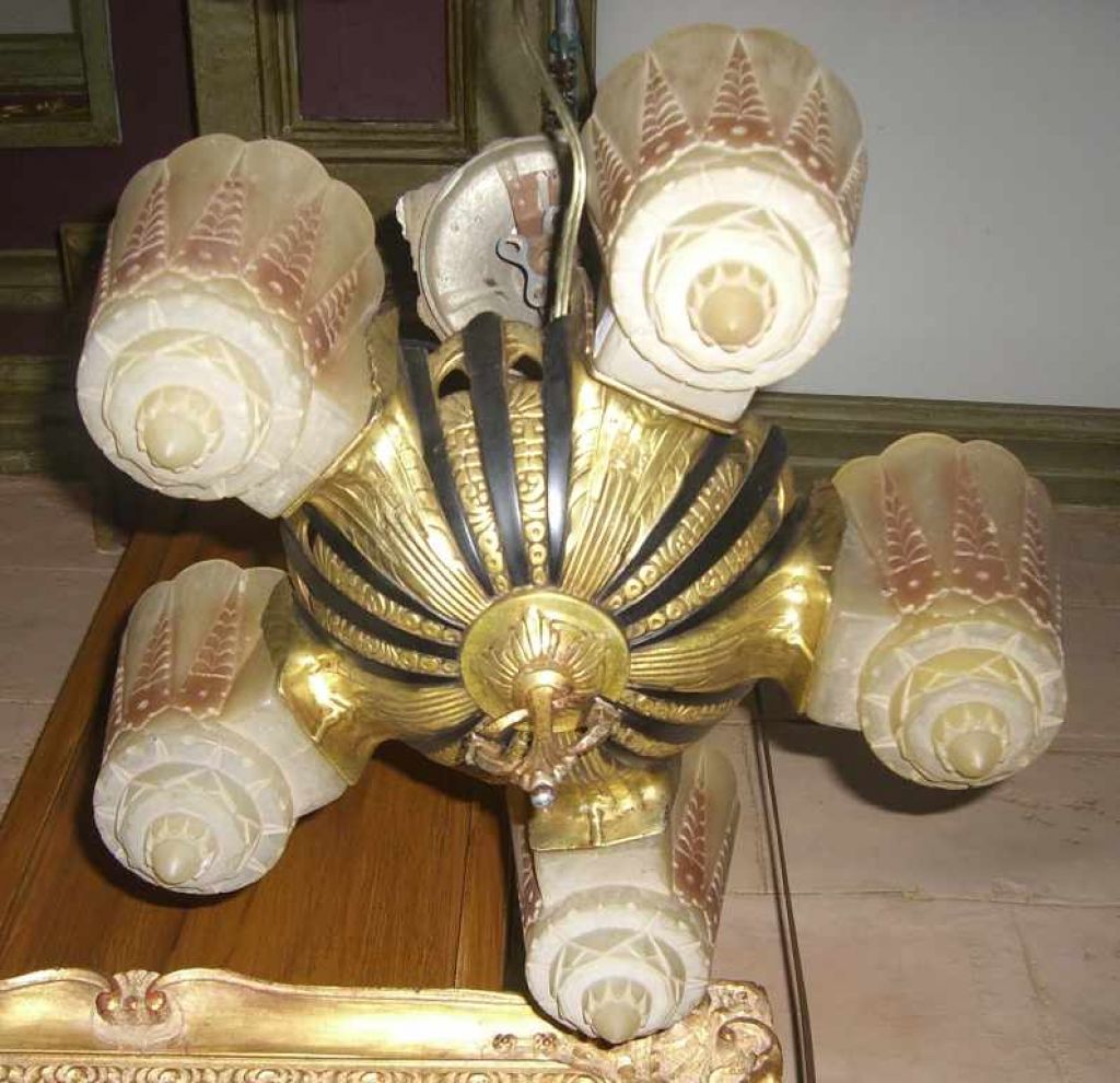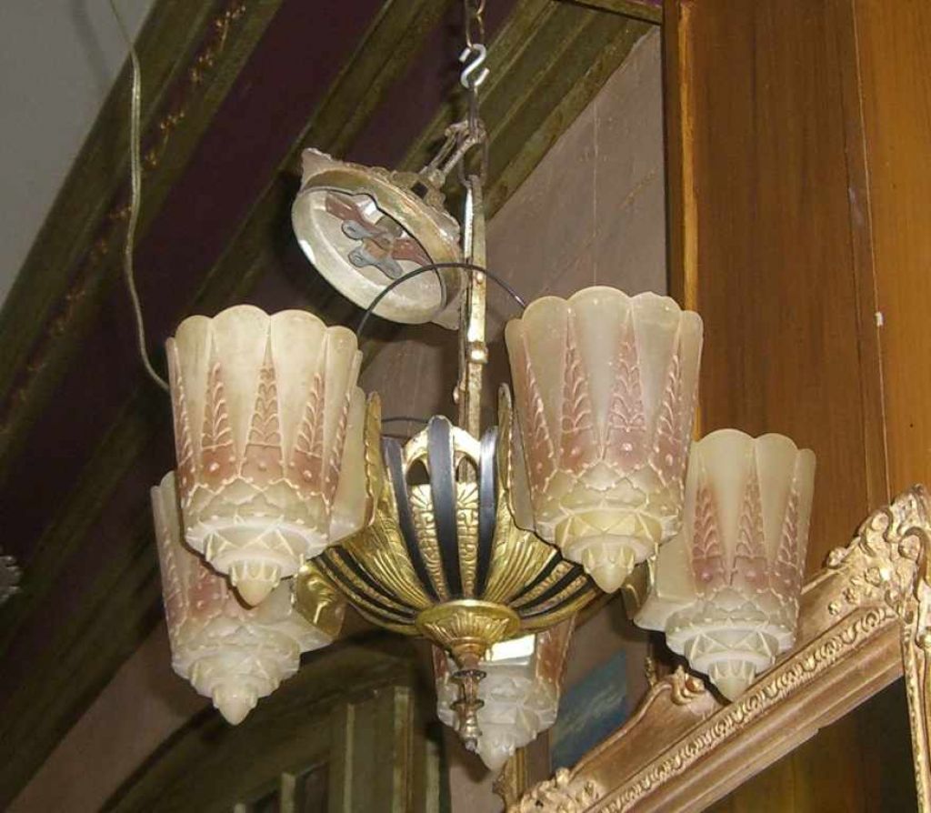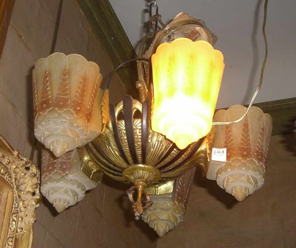 Art Deco 5 Slip Chandelier/Phoenix Glass - 17" from bottom of chain - w/shade 20", each shade 7" tall Art Deco 5 Slip Chandelier/Phoenix Glass - 17" from bottom of chain - w/shade 20", each shade 7" tall